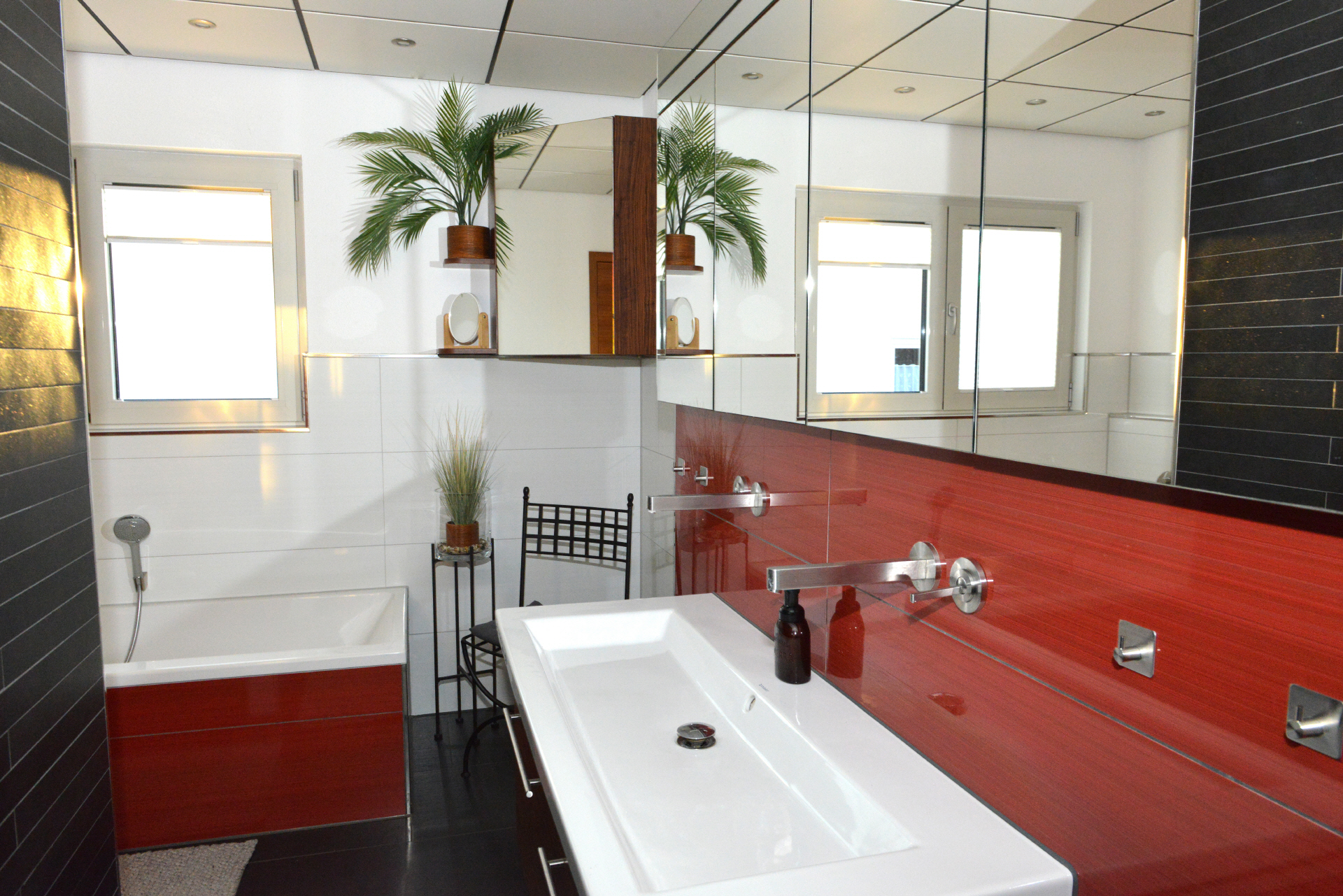 - Badezimmer mit Badewanne, Dusche, WC, Bidet, Fußbodenheizung
