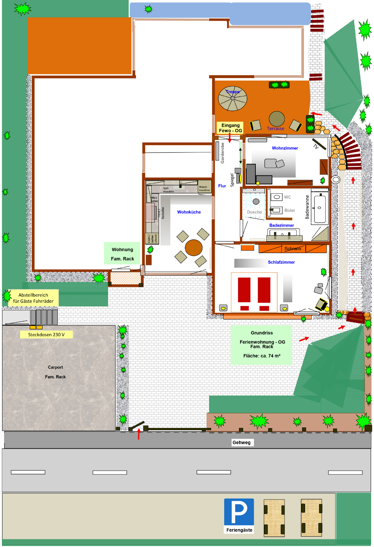 - Stellplatz mit Lademöglichkeit für E-Bikes.